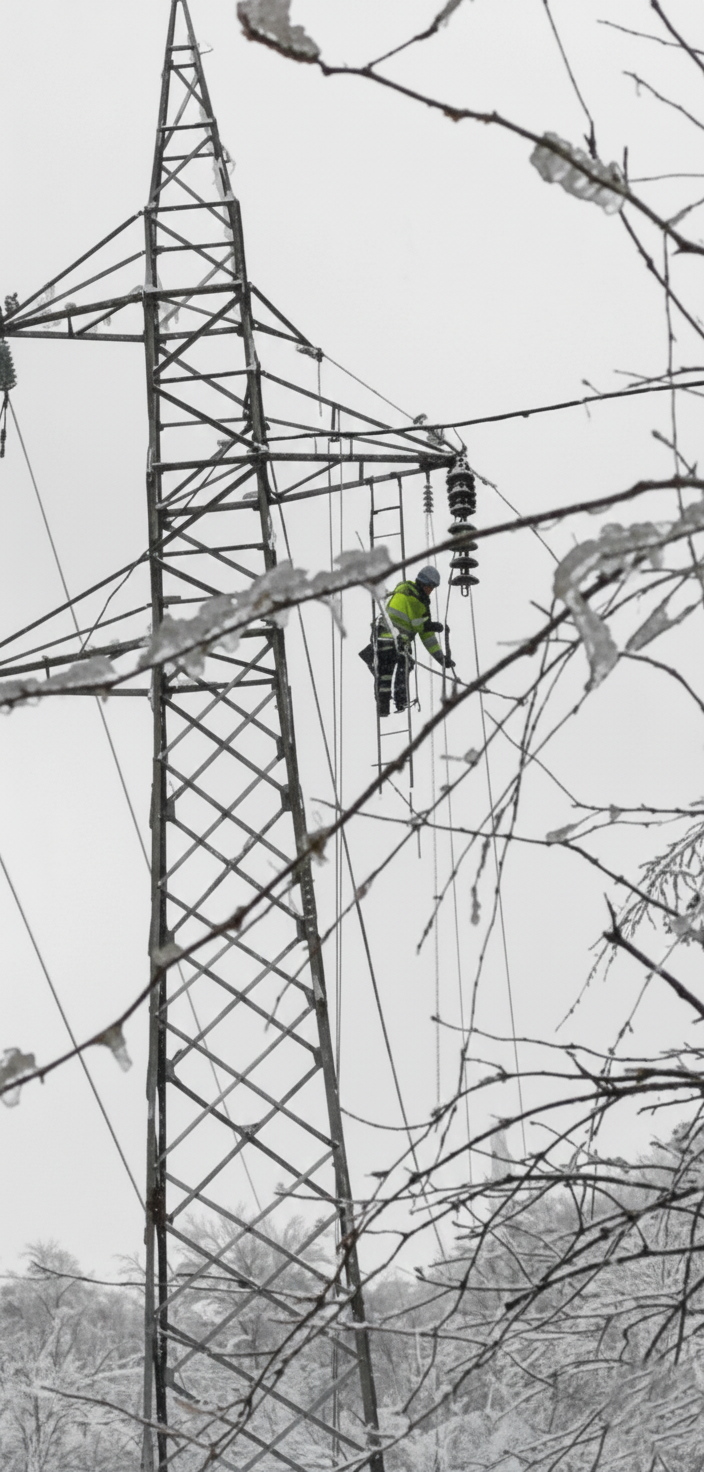 У изузетно тешким зимским условима и по неприступачном терену, упркос снежним падавинама и појави ледене кише екипе ЕМС-а показале су висок ниво пожртвованости, долазећи до најудаљенијих локација ради извођења радова на залеђеним далеководним стубовима висине преко 30 метара.